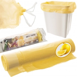 Praktická sada 10 kusov odpadkových vriec s objemom 60 l a rozmermi 70 × 65 cm. Sú z pevného HDPE, majú príjemnú citrónovú vôňu, sťahovaciu pásku na hygienické uzavretie a vysokú odolnosť. Ideálne do domácnosti, kancelárie aj verejných priestorov.