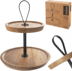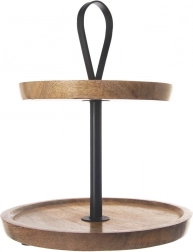 Štýlový dvojposchodový etažér z exotického dreva mangovníka s čiernou kovovou konštrukciou je ideálny na servírovanie a prezentáciu dezertov, ovocia a občerstvenia. Ponúka dve poschodia na úsporu miesta, stabilné prevedenie, praktické madlo na prenášanie a protišmykové podložky na ochranu stola. Skvele ladí s interiérmi v štýle LOFT.