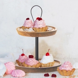 Dodajte svojmu stolovaniu eleganciu a poriadok. Drevený dvojposchodový etažér z mangového dreva umožní efektne vystaviť cupcakes, sušienky, dezerty, ovocie aj slané kanapky. Vďaka dvom úrovniam s rôznymi priemermi ľahko ušetríte miesto na stole a pritom zachováte prehľadnú prezentáciu.