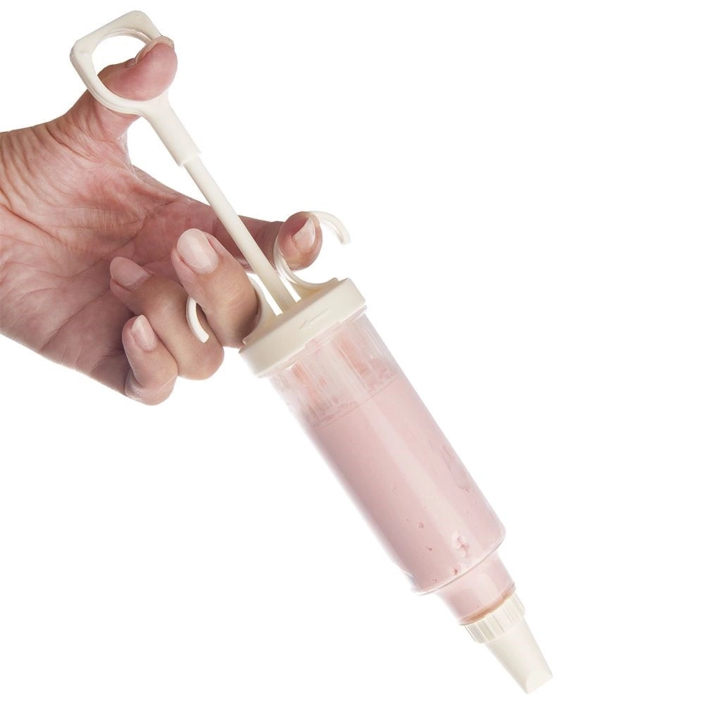 Univerzálny dekorátor na torty a pečivo sa ľahko plní krémom alebo šľahačkou a vďaka piestovému ovládaniu zaručuje rovnomerné a čisté dávkovanie. Priehľadný valec umožňuje mať pod kontrolou hladinu náplne, vymeniteľné špičky potom ponúknu široké možnosti zdobenia od jemných línií po bohaté hviezdičky.