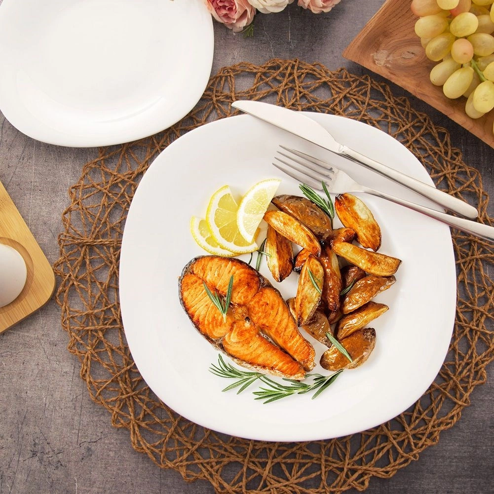 Rozmer 26,5 × 26,5 cm poskytuje dostatok miesta na mäso, prílohy aj šaláty – servírujte esteticky a pohodlne.