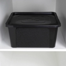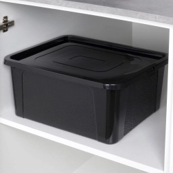 Multifunkčný plastový box s vekom pomôže jednoducho zorganizovať šatníkové skrine, police aj regály. Krycie veko so zacvakávacím uzatváraním chráni obsah pred prachom a vlhkosťou, box má zaoblené rohy na bezpečné používanie a pevné steny na každodennú záťaž.