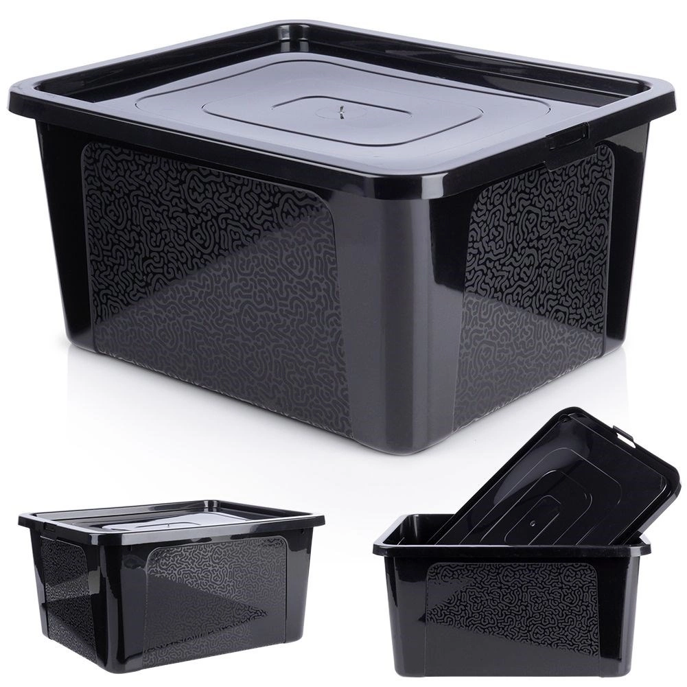 Vďaka objemu 20 l sa hodí na textílie, hračky, dokumenty, kuchynské potreby aj náradie. Je stohovateľný, takže šetrí miesto v komore, garáži aj kancelárii. Decentný dekor na bočných stenách dodáva elegantný vzhľad, ktorý zapadne do moderného interiéru.
