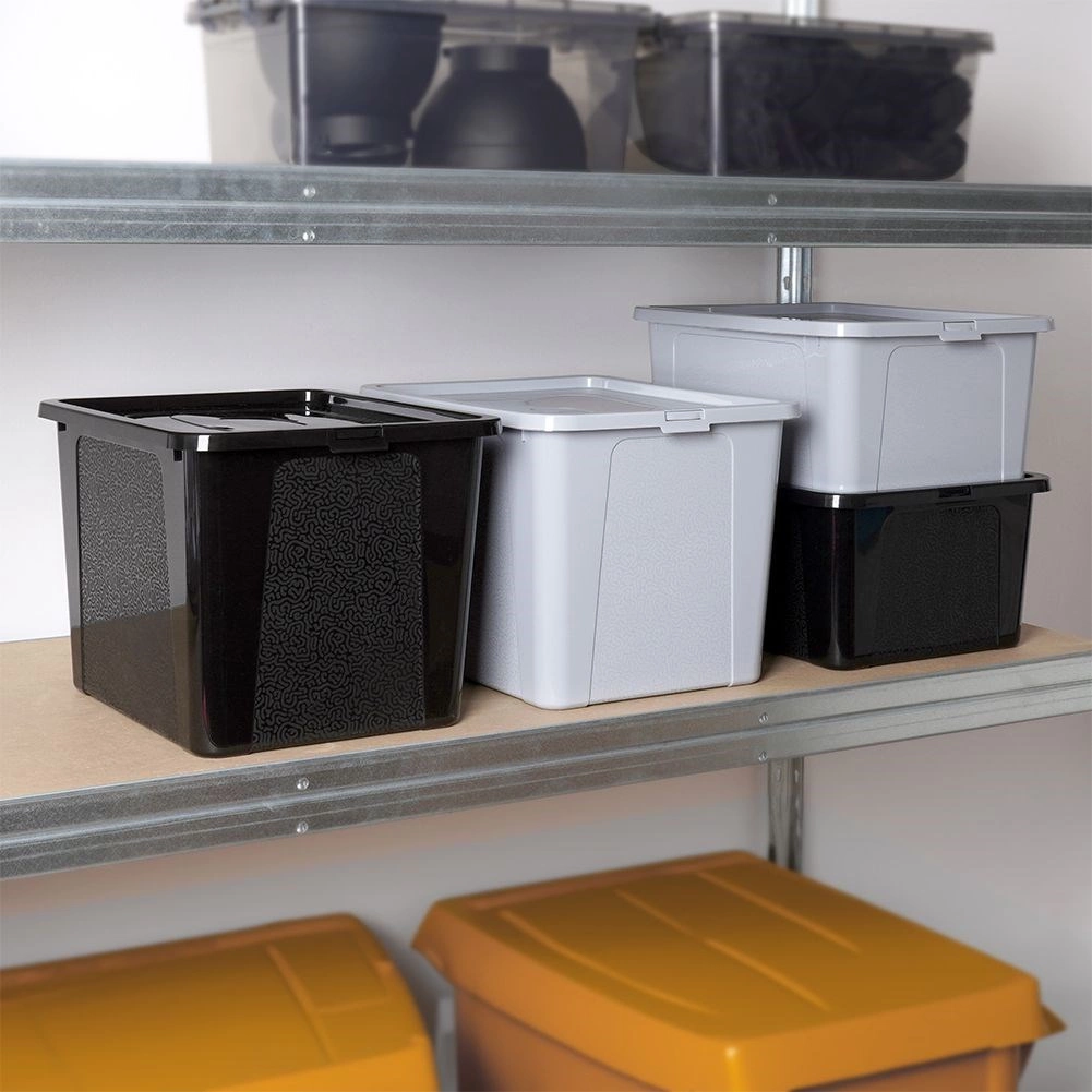 Vďaka plochému veku a stabilným bočniciam možno boxy bezpečne ukladať na seba a maximalizovať tak úložný priestor doma, v kancelárii či garáži.