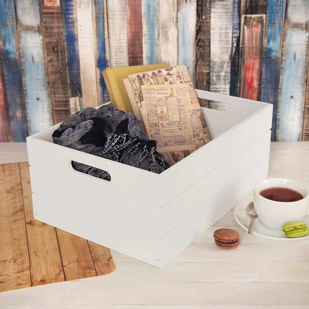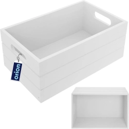 v nadčasovej bielej farbe pomôže udržať poriadok v každej miestnosti. Je vyrobená z odolného dreva a vďaka oválnym výrezom na bokoch sa ľahko prenáša. Minimalistický vzhľad sa hodí do moderných aj klasických interiérov.