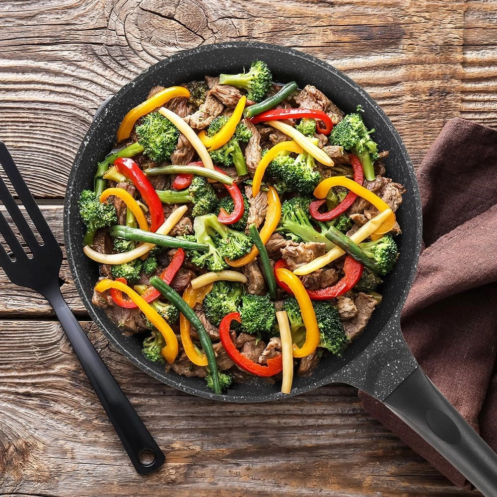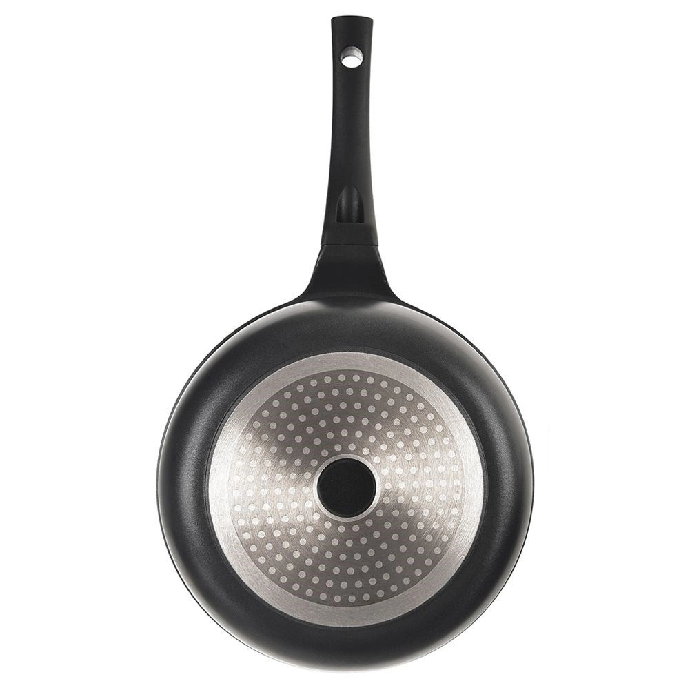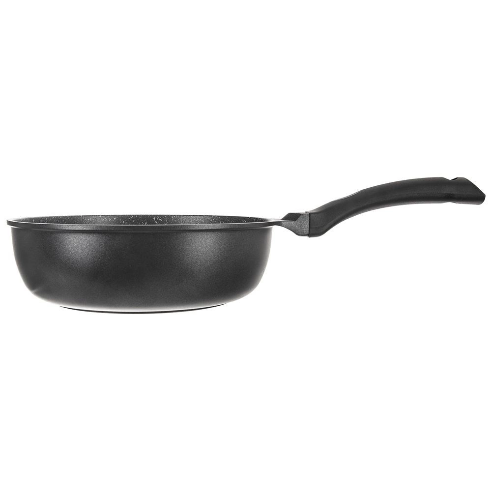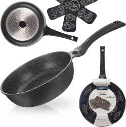 Liaty hliník vedie teplo rýchlo a rovnomerne. Vysoké okraje sú ideálne na vyprážanie, restovanie aj dusenie väčších porcií.