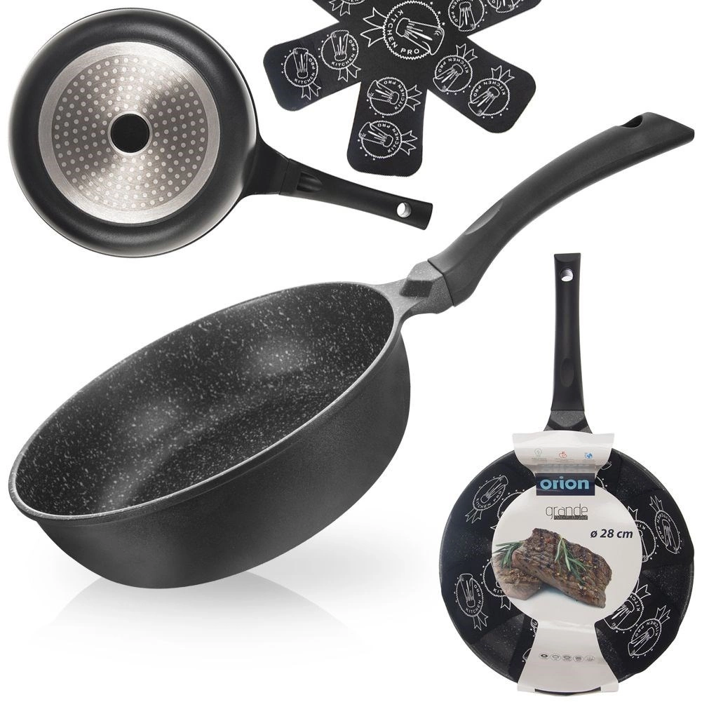 Objavte praktickú a elegantnú voľbu na každodenné varenie: hlboká a vysoká panvica GRANDE 28 cm. Liate hliníkové telo s výbornou tepelnou vodivosťou minimalizuje tepelné straty a urýchľuje prípravu pokrmov. Vďaka zvýšeným okrajom je ideálna na vyprážanie, restovanie aj dusenie mäsa, zeleniny a jedál z jednej panvice.