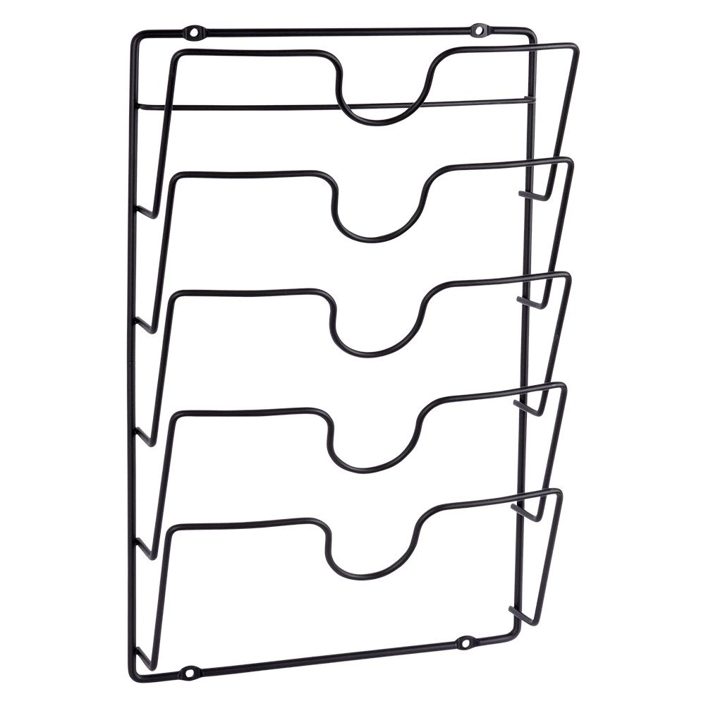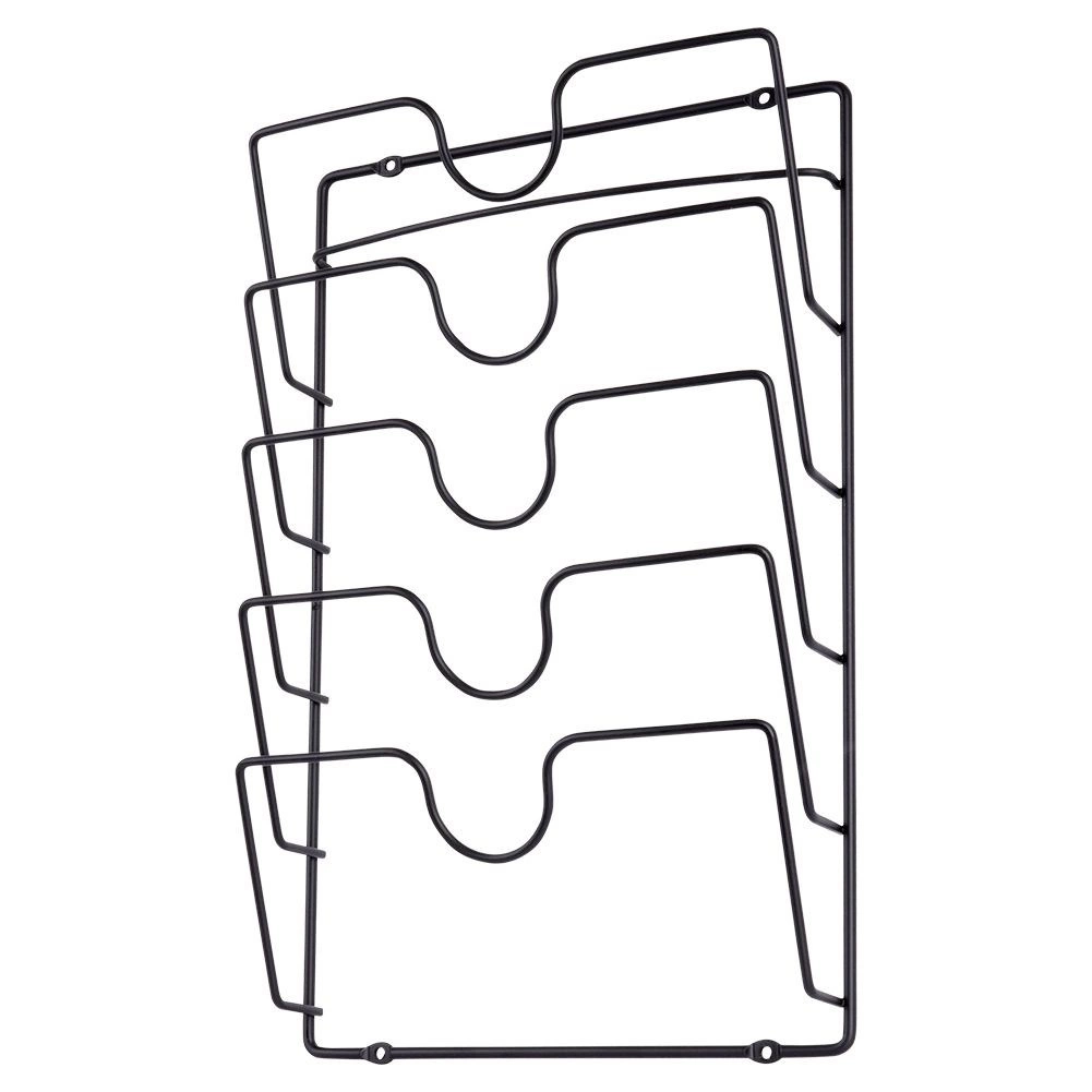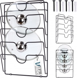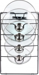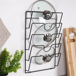 Praktický kovový držiak na pokrievky s kapacitou až pre 5 viek udrží vašu kuchyňu dokonale prehľadnú. Ľahko ho pripevníte na stenu alebo dovnútra skrinky, čím šetrí miesto na pracovnej doske. Odolná kovová konštrukcia s práškovým lakom v matnej čiernej zaručuje dlhú životnosť a moderný vzhľad.