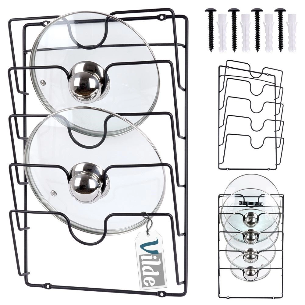 Štyri až päť stupňov na bezpečné uloženie viek rôznych veľkostí – okamžitý prehľad a poriadok v kuchyni.