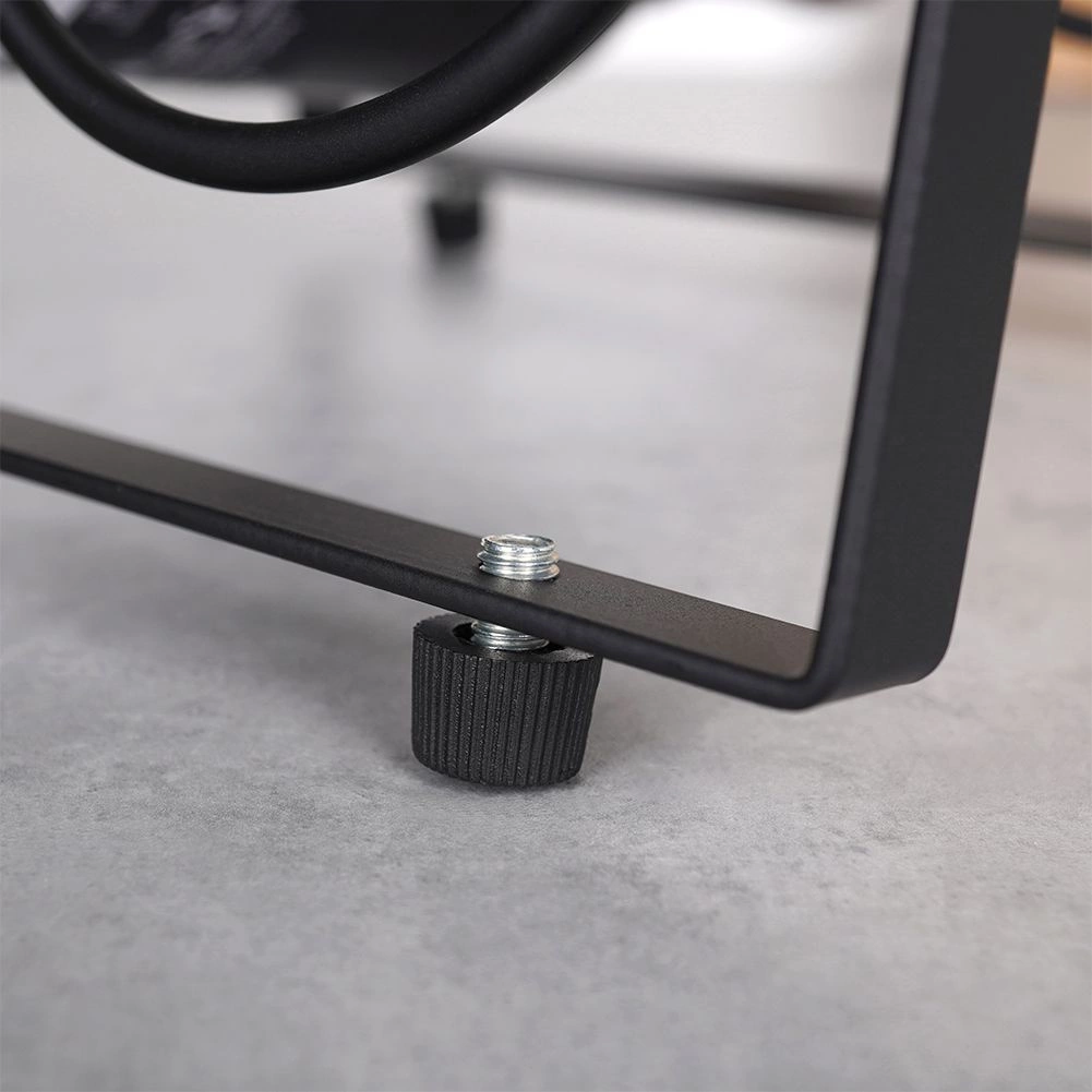 Masívny oceľový rám s vlnovitými držiakmi bezpečne fixuje fľaše a chráni ich pred pohybom. Protišmykové nožičky zabezpečujú stabilitu na pracovnej doske aj polici.