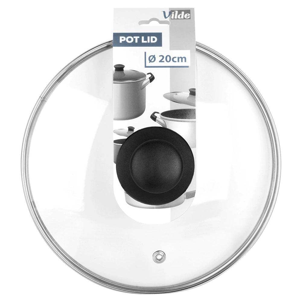 Táto sklenená pokrievka VILDE s priemerom 20 cm je spoľahlivým doplnkom na každodenné varenie. Priehľadné, žiaruvzdorné sklo umožňuje kontrolovať pokrm bez dvíhania pokrievky, čím šetrí teplo aj čas. Nerezová obruba zvyšuje odolnosť a zaisťuje pevné a tesné dosadnutie na riad.