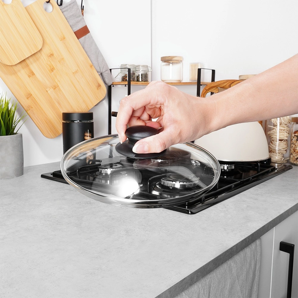 Pokrievka je vhodná do umývačky a odolná až do 200 °C. Ergonomický, tepelne odolný úchyt poskytuje bezpečný úchop pri manipulácii. Skvelá voľba, ak potrebujete doplniť pokrievku k panvici či hrncu bez originálneho veka.