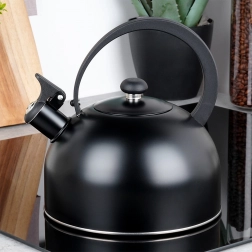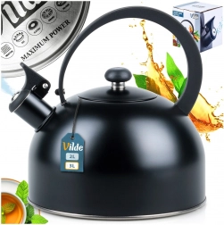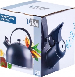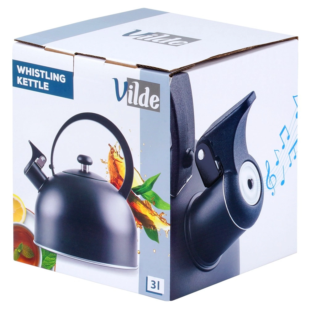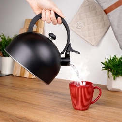 Elegantná píšťalková kanvica z kvalitnej nehrdzavejúcej ocele s objemom 3 l (užitočný 2,3 l) v matnej čiernej farbe. Disponuje akutermickým dnom pre rýchly ohrev, sklopným píšťalkovým uzáverom a ergonomickým, tepelne odolným madlom. Vhodná na plyn, elektrinu, sklokeramiku aj indukciu.