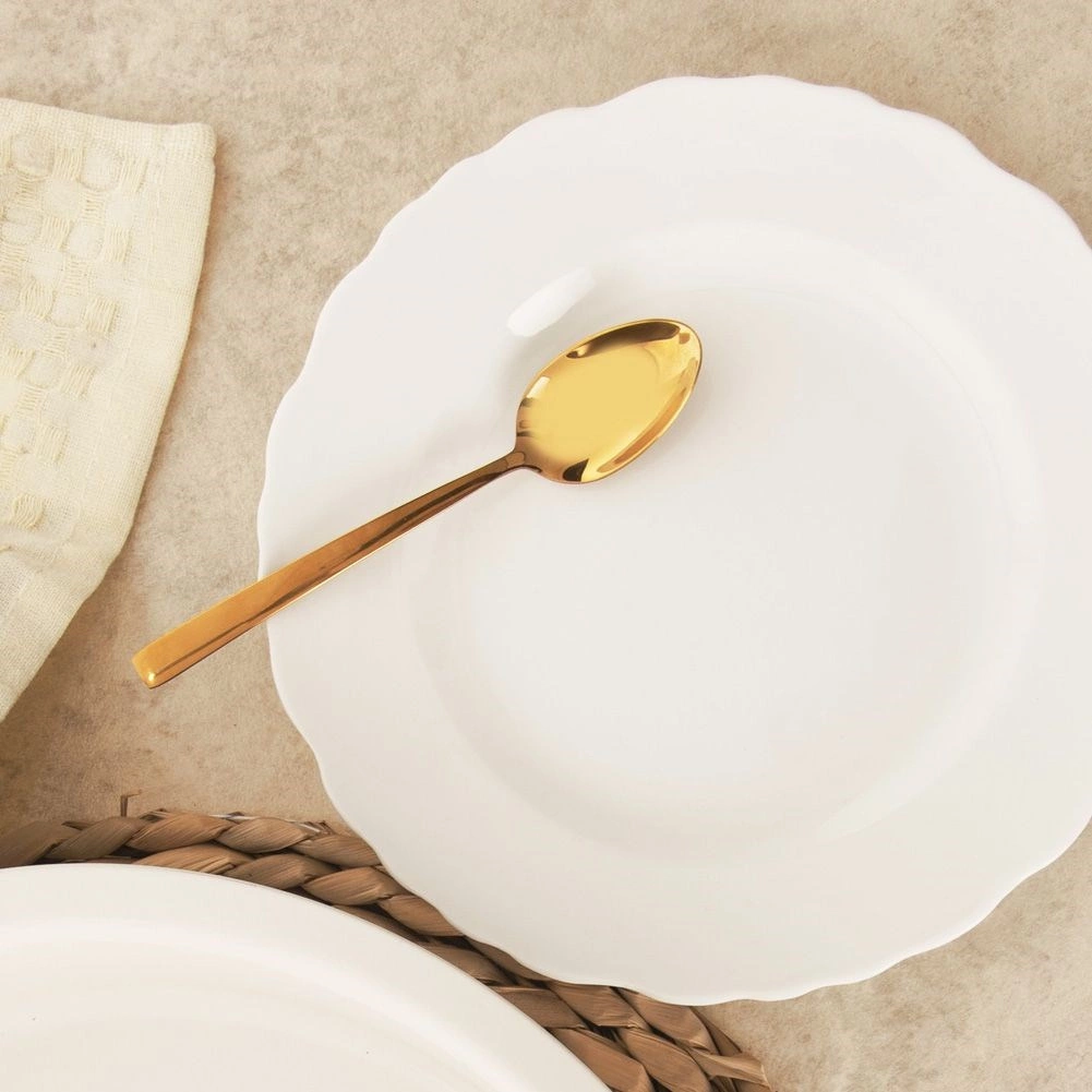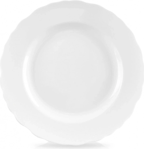 Elegantný porcelánový dezertný tanier s priemerom 19,5 cm so zvlneným okrajom je ideálny na podávanie tort, dezertov aj desiat. Vyrobený z kvalitného bieleho porcelánu, je vhodný do umývačky riadu aj mikrovlnnej rúry a vďaka klasickému dizajnu skvele ladí s akoukoľvek výbavou stola.