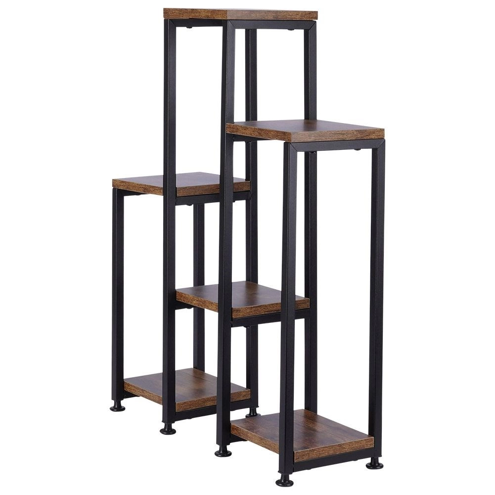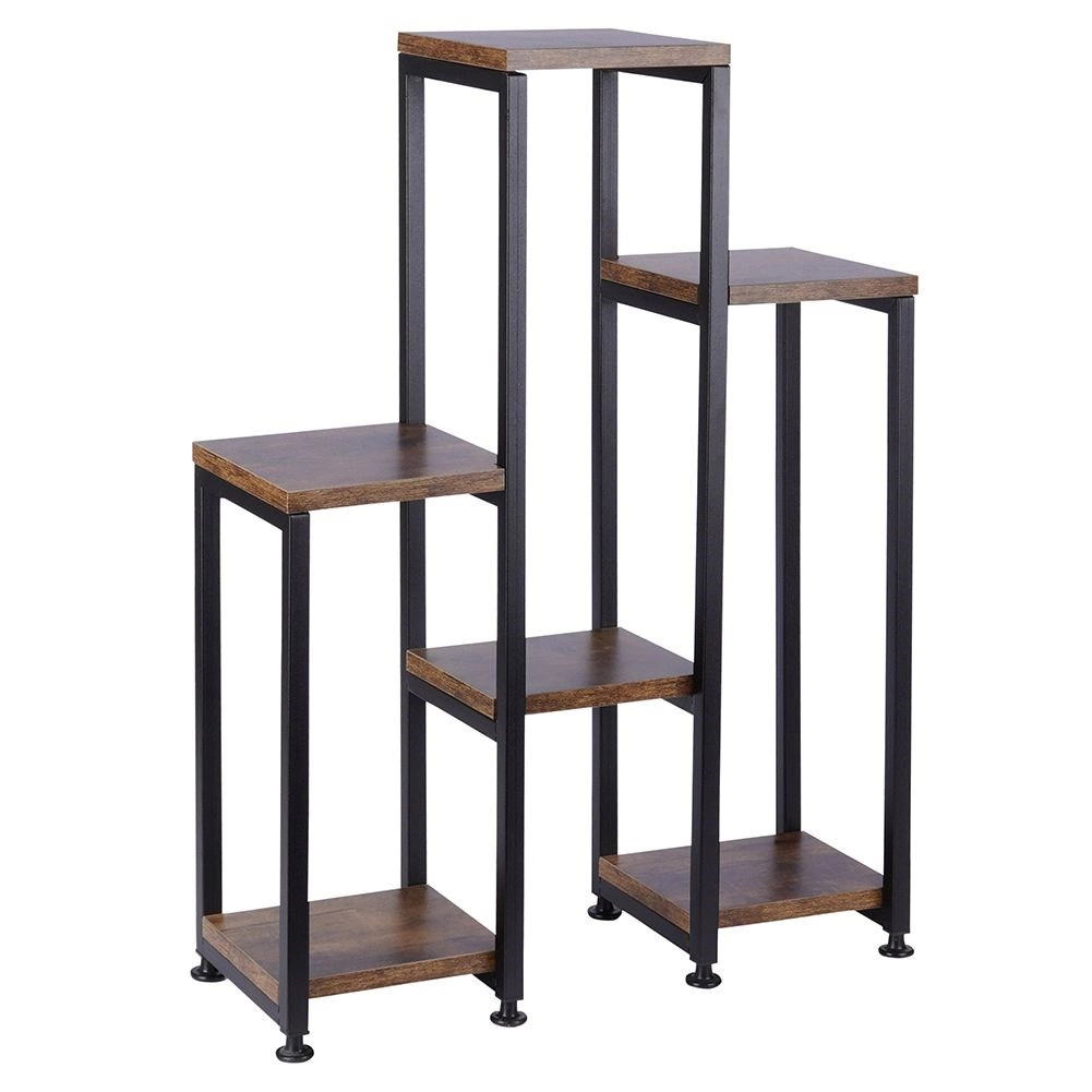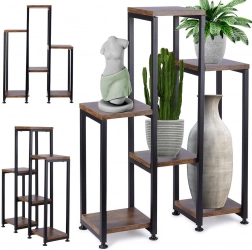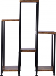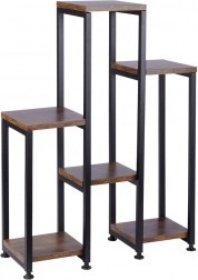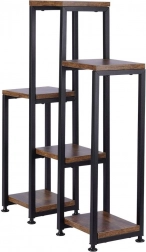 Štýlový kvetinový stojan v industriálnom loft štýle ponúka 6 políc na 5 rôznych úrovniach pre kvety aj dekorácie. Vďaka pevnej kovovej konštrukcii a policiam z MDF v dekore dreva je stabilný, odolný a ľahko sa čistí. Kompaktné rozmery 49 × 18 × 70 cm a nosnosť až 60 kg z neho robia ideálnu voľbu do obývačky, kuchyne, chodby, kancelárie aj na krytý balkón či terasu.