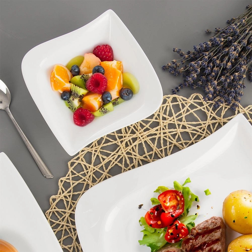 Štýlová porcelánová miska MONA prináša spojenie moderného dizajnu a praktickosti. Čisto biela glazúra a tvar nepravidelného štvorca s jemne zvlnenými hranami z nej robia atraktívny doplnok pre každú tabuľu. Perfektne sa hodí na servírovanie malých pochutín, šalátov, dipov alebo dezertov.