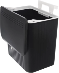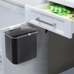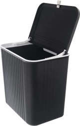 Praktický závesný odpadkový kôš s objemom 13 l pre kuchyňu aj domácnosť. Môžete ho zavesiť na dvierka skrinky, namontovať na stenu alebo umiestniť klasicky pod drez. Má dve možnosti otvárania veka pre rýchle vysypanie zvyškov a uzatvárateľné veko proti zápachu. Odolné prevedenie z kvalitného plastu v čiernej farbe s pohodlnou bielou rukoväťou.