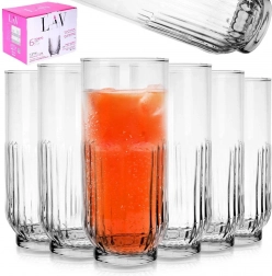 Elegantná sada šiestich vysokých pohárov s objemom 380 ml z kvalitného, číreho skla s vertikálnym reliéfom v dolnej časti. Skvelé na každodenné používanie – na vodu, limonády, džúsy aj koktaily. Vďaka stabilnému dnu a odolnému prevedeniu sú praktické, univerzálne a vhodné do umývačky riadu.