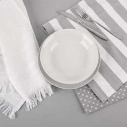 Pruhy, bodky a čisto biela utierka sa ľahko kombinujú a dodajú kuchyni elegantný vzhľad.