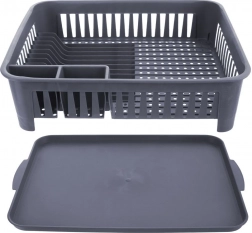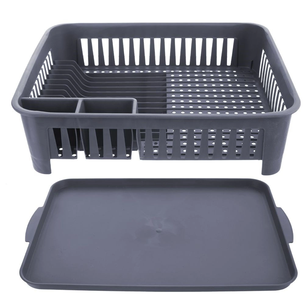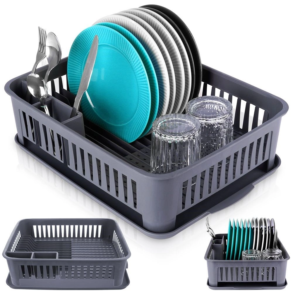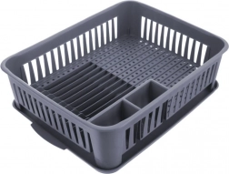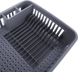 Udržujte svoju kuchyňu čistú a organizovanú. Tento sivý odkvapkávač na riad je vyrobený z kvalitného, odolného plastu a vďaka kompaktným rozmerom sa hodí na väčšinu kuchynských liniek. Vyberateľná odkvapkávacia miska zachytí vodu a chráni pracovnú dosku, zatiaľ čo premyslené rozvrhnutie umožní rýchle a hygienické sušenie riadu.