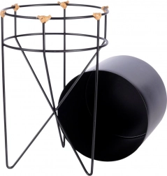 Dizajnový čierny obal s drôteným stojanom vynikne v moderných aj klasických interiéroch. Kovový kvetináč možno zo stojana jednoducho vybrať a preniesť. Vďaka zvýšenej polohe rastliny lepšie vyniknú a získajú prirodzené prúdenie vzduchu.