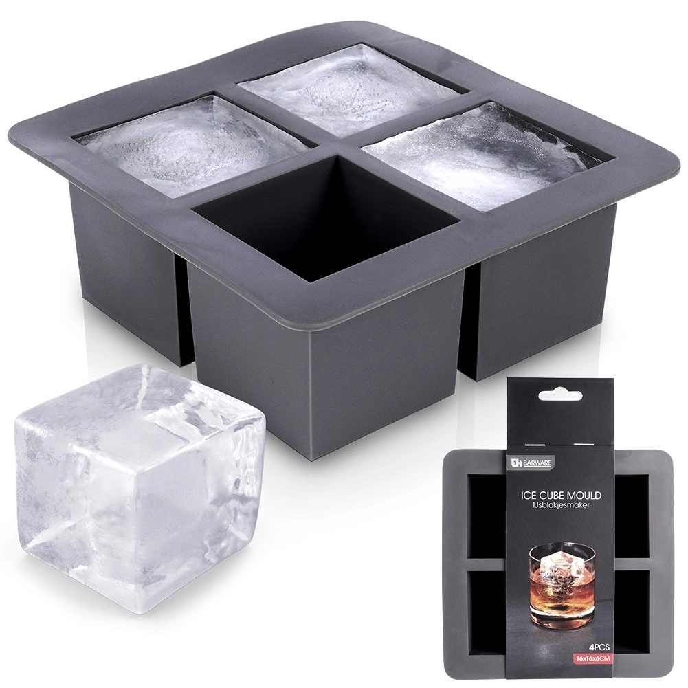 - 4 veľké kocky – ideálne pre whisky a prémiové koktaily.