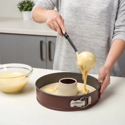 Využijete ju na nadýchané korpusy, bábovky, cheesecake aj dezerty za studena. Materiál z vysokokvalitnej ocele rovnomerne rozvádza teplo a je odolný voči teplotám do 230 °C. Povrch bez PFOA a PTFE je bezpečný a ľahko sa čistí.