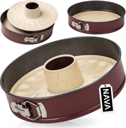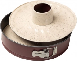 Univerzálna rozkladacia forma 2v1 na pečenie tort aj báboviek s dvoma vymeniteľnými dnami – hladkým a s komínom. Odolná uhlíková oceľ s granitovou nepriľnavou keramickou povrchovou úpravou bez PFOA a PTFE zaistí ľahké vyklopenie a rovnomerné prepečenie. Priemer 28 cm, výška 7 cm, vhodná do plynových aj elektrických rúr, odolnosť až 230 °C.