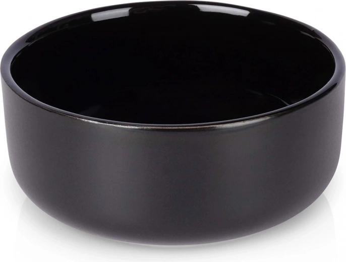 Štýlová čierna keramická miska s objemom 150 ml a priemerom 9 cm je ideálna na oriešky, dipy, omáčky či dezerty. Vnútro je lesklé, vonkajšok matný pre moderný vzhľad, je vhodná do umývačky aj mikrovlnnej rúry a skvelo doplní každý stôl.