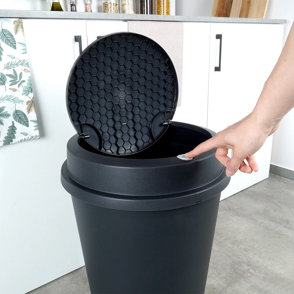 Tento čierny odpadkový kôš s objemom 47 litrov je navrhnutý pre každodenné pohodlie a čistotu. Má dvojfázové veko na rýchle vhodenie odpadu výklopom aj na otvorenie tlačidlom, ktoré pomáha obmedziť šírenie zápachu. Vďaka nadčasovému vzhľadu skvele zapadne do moderných aj klasických interiérov.