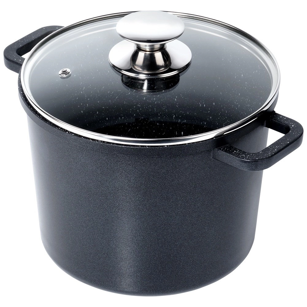 Vysoký hrniec GRANDE je vyrobený z odolného hliníka s vnútornou nepriľnavou žulovou povrchovou úpravou PFLUON, ktorá neobsahuje PFOA ani PTFE. Vďaka tomu pripravíte zdravšie pokrmy s menším množstvom tuku a bez pripekania. Sklenená pokrievka s nerezovým lemom a vetracím otvorom umožní kontrolu varenia bez zbytočného zdvíhania veka.