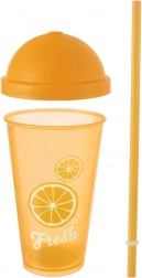 Štýlový pohárik s objemom 450 ml s kupolovitým viečkom a opakovane použiteľnou slamkou je ideálny na každodenné pitie. Je vyrobený z odolného plastu v oranžovej farbe s efektným citrusovým dekorom. Vďaka viečku je nápoj chránený a slamka je navrhnutá tak, aby nevypadla. Perfektný na vodu, limonádu, koktaily či džúsy – doma aj na záhrade. Ľahký, neroztĺkateľný a praktický na pikniky a vonkajšie posedenia.