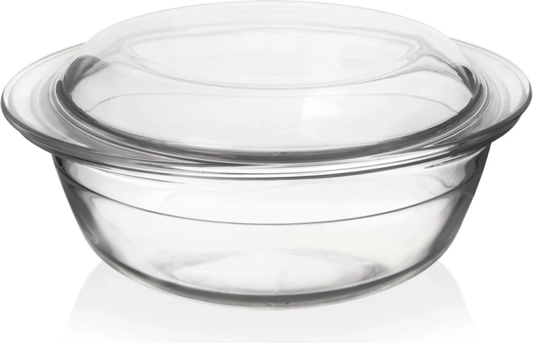 Univerzálne sklenené žiaruvzdorné nádoby s vekom s objemom 1,5 l na pečenie, zapekanie aj servírovanie. Vyrobené z odolného borosilikátového skla, vhodné do rúry, mikrovlnky, umývačky, chladničky aj mrazničky. Dve misy možno použiť samostatne alebo spolu ako misa + veko na zachovanie šťavnatosti pokrmov.