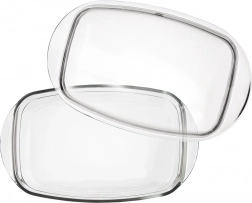 Široký teplotný rozsah -20 °C až +300 °C, ideálne do rúry, mikrovlnky, chladničky aj mrazničky. Sklo je číre, ľahko sa čistí a dlho vydrží.