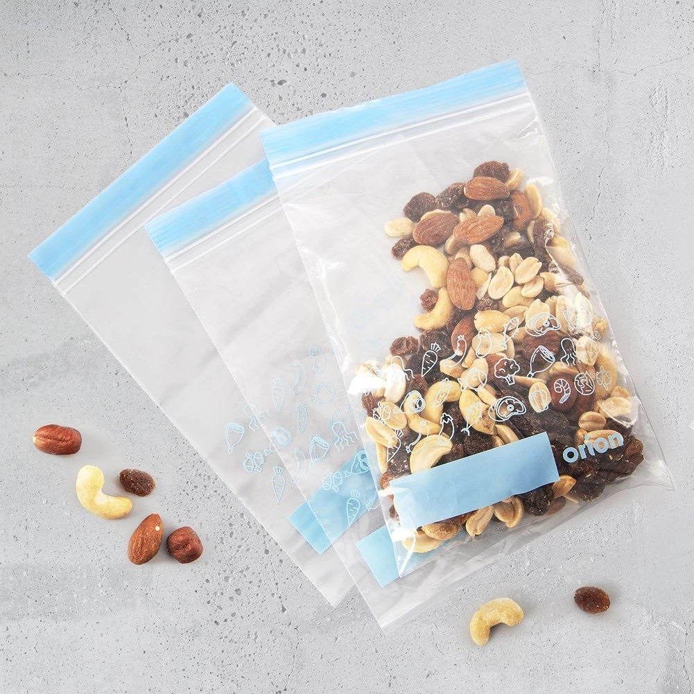 Praktická sada 25 ks vreciek so zipsom s rozmermi 20 × 12 cm na každodenné použitie. Vďaka dvojitému uzáveru sú úplne tesné, priehľadné pre jednoduchú kontrolu obsahu a vhodné do chladničky aj mrazničky. Ideálne na potraviny, sypké suroviny aj drobnosti na cesty.