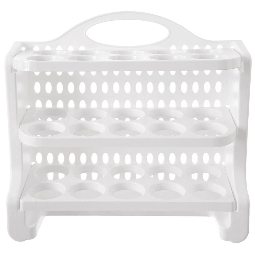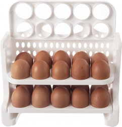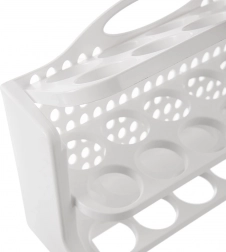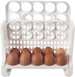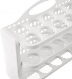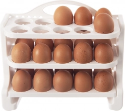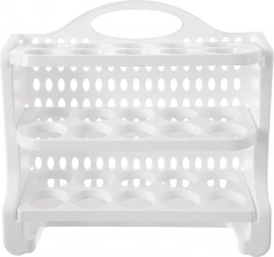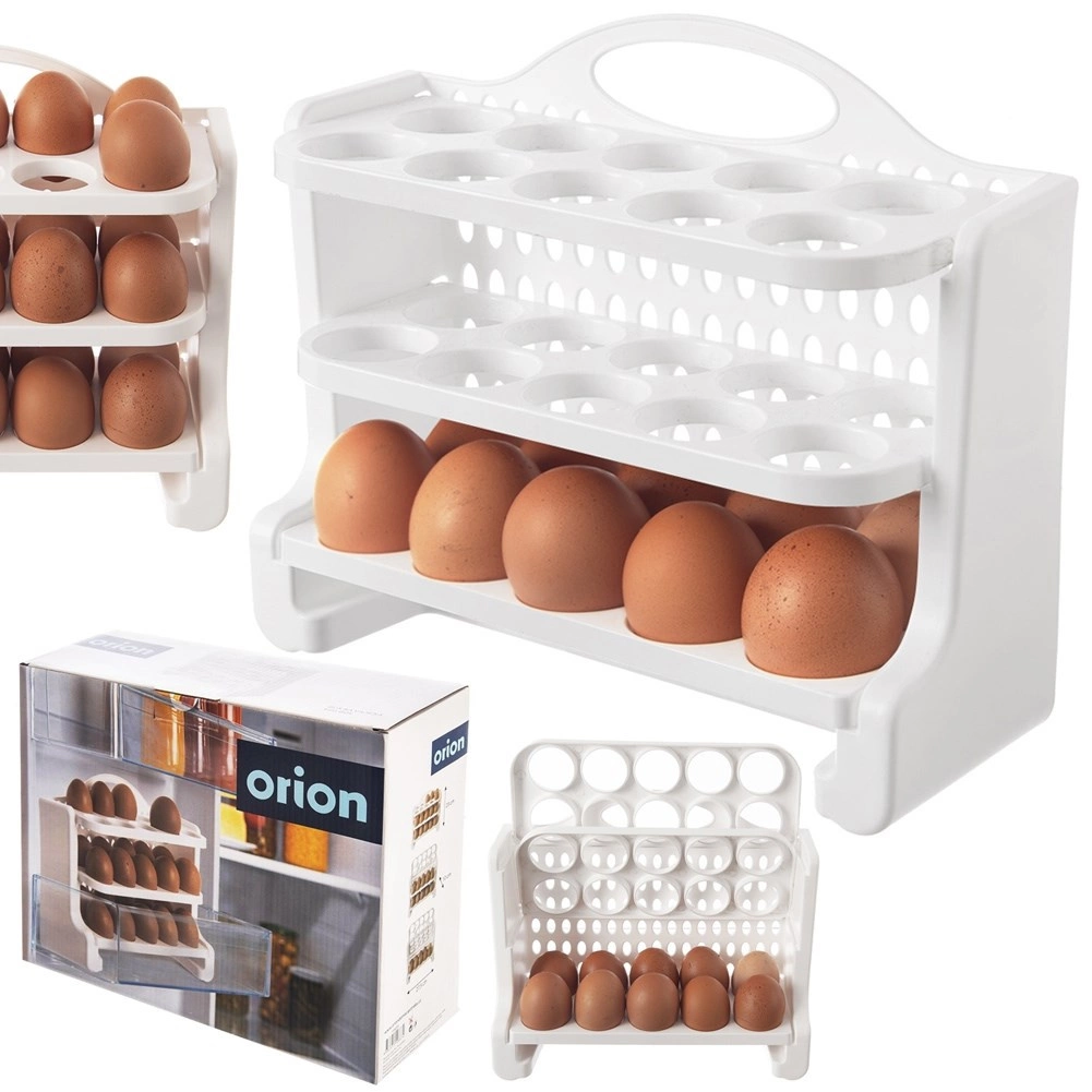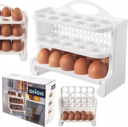 Udržte chladničku perfektne zorganizovanú. Trojposchodový stojan na vajcia ORION s kapacitou 30 kusov je vyrobený z kvalitného, zdravotne nezávadného plastu v bielej farbe. Každá úroveň má vyhradené pozície pre vajcia, ktoré bránia ich kotúľaniu a minimalizujú riziko poškodenia. Vďaka kompaktným rozmerom 28 × 10 × 22,5 cm ľahko zapadne na policu aj do dverí chladničky (vopred overte kompatibilitu s vaším modelom).