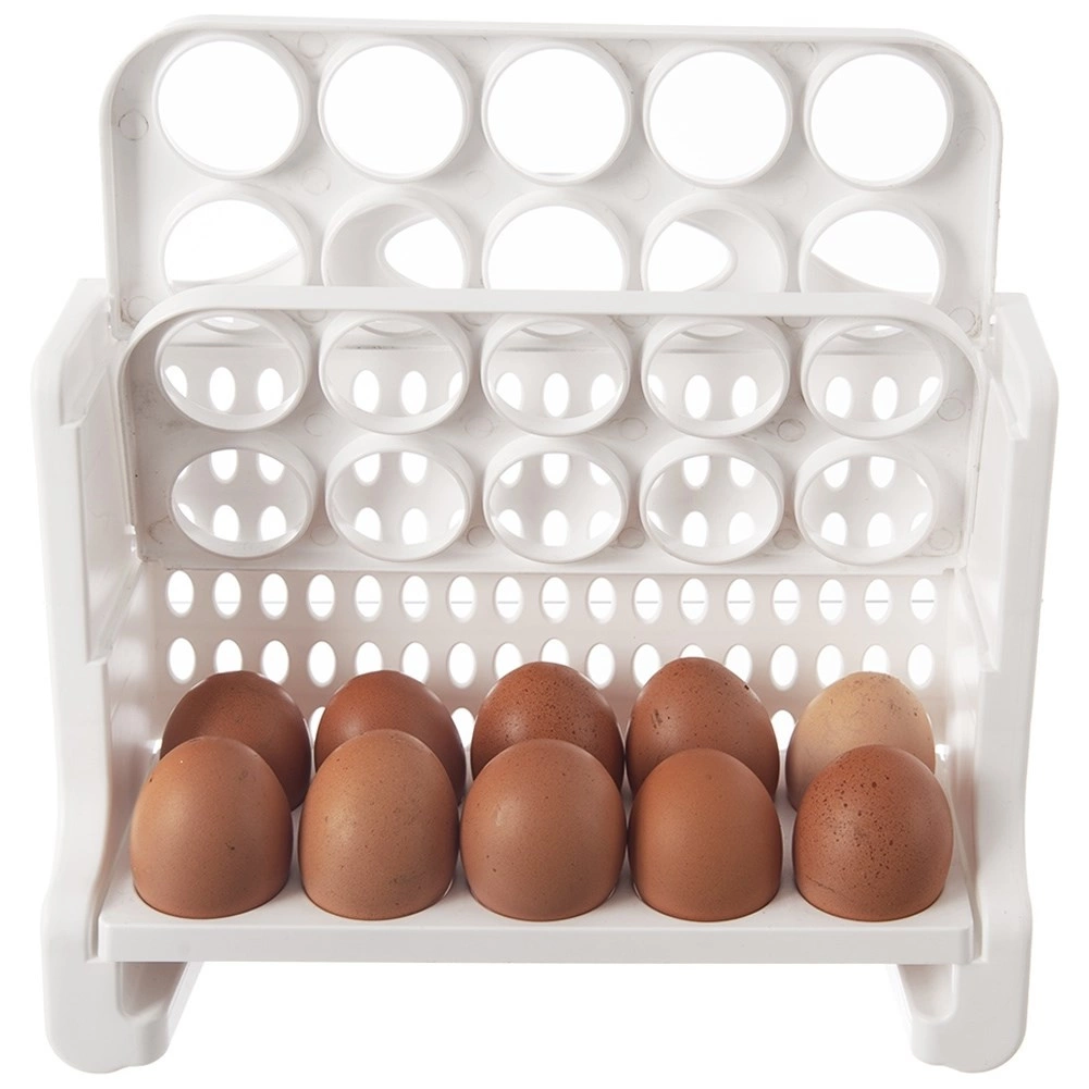 Tri poschodia po 10 kusoch udržia vajcia prehľadne a bezpečne. Ideálne pre väčšie domácnosti aj časté pečenie.
