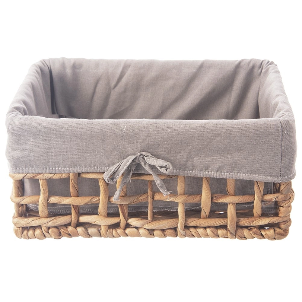 Tento praktický a dekoratívny košík je upletený z prírodného materiálu (vodný hyacint) na pevnej kovovej konštrukcii, takže si udrží tvar a dlhú životnosť. Mäkká textilná vložka v elegantnej sivej farbe chráni uložené predmety a možno ju ľahko vybrať a vyprať do 30 °C.