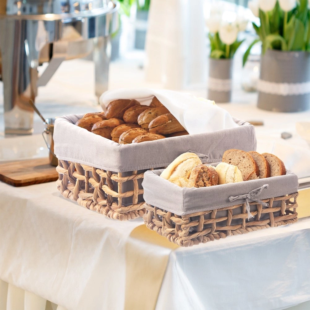 Štýlový úložný košík z prírodných vlákien s ručným pletením a vyberateľnou prateľnou vložkou v sivej farbe. Ideálny na organizáciu domácnosti, do kúpeľne, spálne aj šatníka, rovnako tak na servírovanie pečiva v domácnosti aj gastronómii.