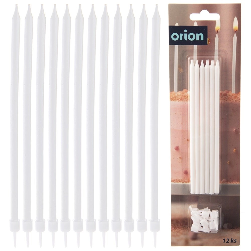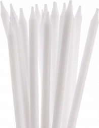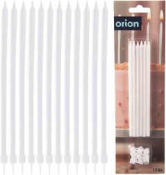 Elegantné biele tortové sviečky s výškou 14,5 cm sa postarajú o výrazný efekt na každej oslave. Vďaka štíhlemu tvaru a neutrálnej farbe skvele ladia s akoukoľvek dekoráciou a neprekrývajú zdobenie torty. Súčasťou balenia sú plastové držiaky pre bezpečné a pevné uchytenie do korpusu.