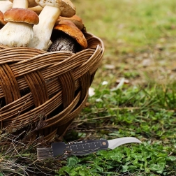 Zakrivená čepeľ z nehrdzavejúcej ocele s dĺžkou 5,5 cm umožňuje ľahké zrezanie hlúbika a základné očistenie húb priamo v lese.