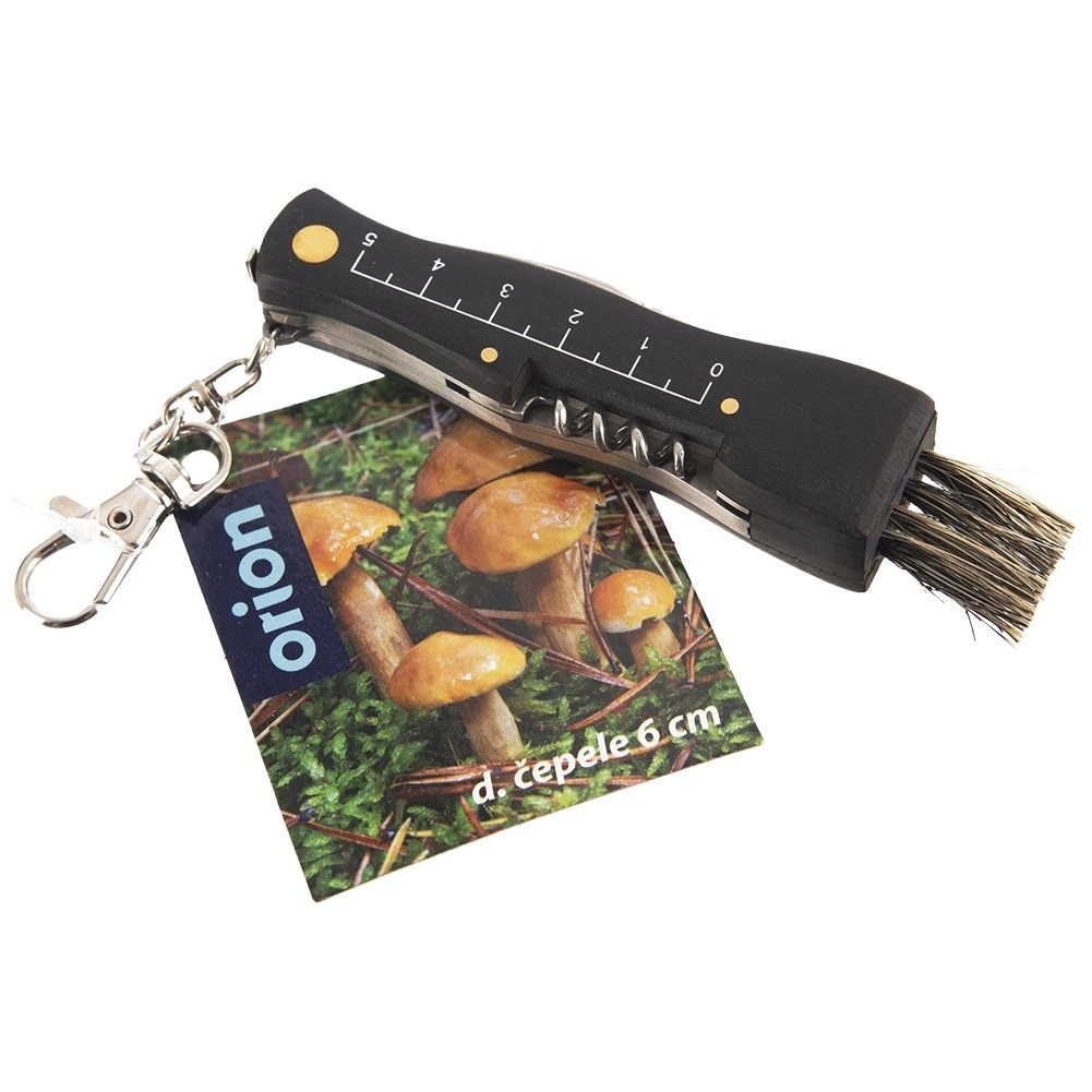 Tento univerzálny hubársky nôž kombinuje bezpečné skladacie ostrie (dĺžka 5,5 cm) s praktickými doplnkami pre pohodlné čistenie a meranie húb priamo v teréne. Kvalitná nehrdzavejúca oceľ a ergonomická drevená rukoväť v čiernom prevedení zabezpečujú dlhú životnosť a pohodlný úchop.