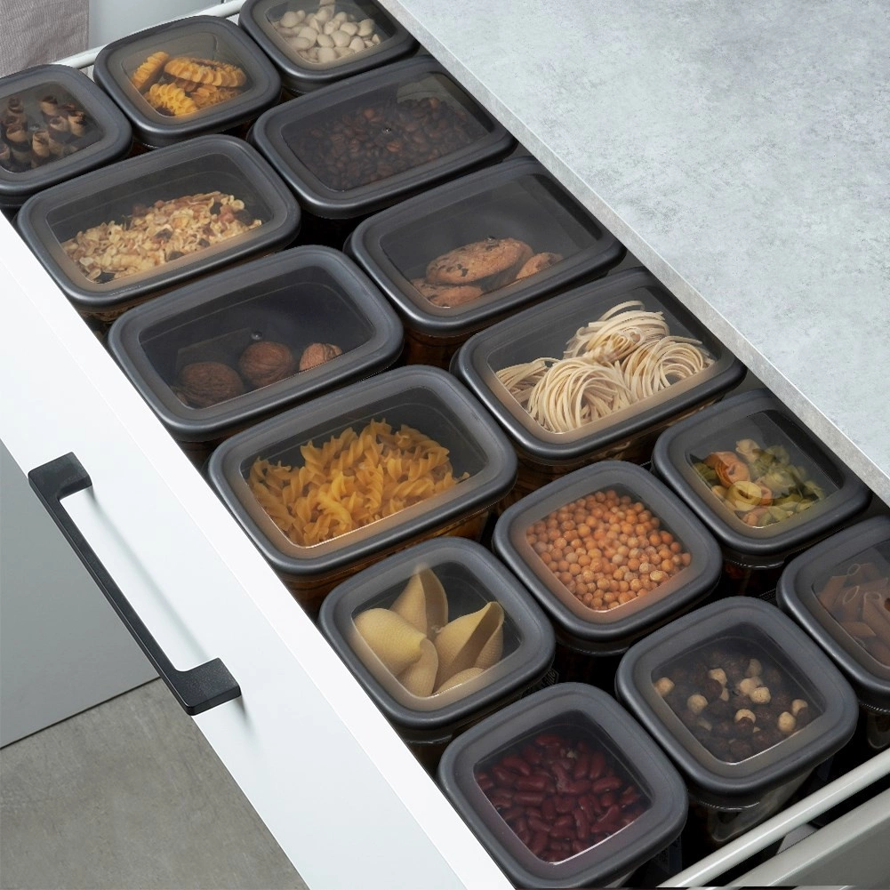 Obdĺžnikový profil a rovné veko uľahčujú stohovanie viacerých nádob a efektívne využitie priestoru v špajzi, zásuvkách aj chladničke.