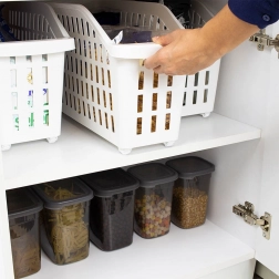Vďaka štyrom hladkým kolieskam kôš ľahko vysuniete aj plne naložený. Vystúpené okraje slúžia ako praktické úchyty na pohodlné prenášanie. Skvele poslúži na čistiace prostriedky, nápoje aj potraviny a rovnako dobre v kancelárii či dielni.