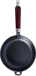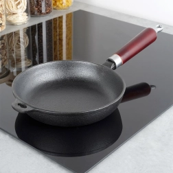 Univerzálna liatinová panvica 20 cm na vyprážanie, pečenie aj dusenie na všetkých typoch sporákov vrátane indukcie, na grile aj priamo nad ohňom. Masívna liatina skvele akumuluje teplo, zabezpečuje rovnomerné prepečenie a udrží pokrmy dlho teplé. Ergonomická drevená rukoväť a pomocné uško na bezpečnú manipuláciu, možnosť zavesenia. Bez chemických povrchových úprav, pri správnej údržbe mimoriadne odolná a dlhoveká.