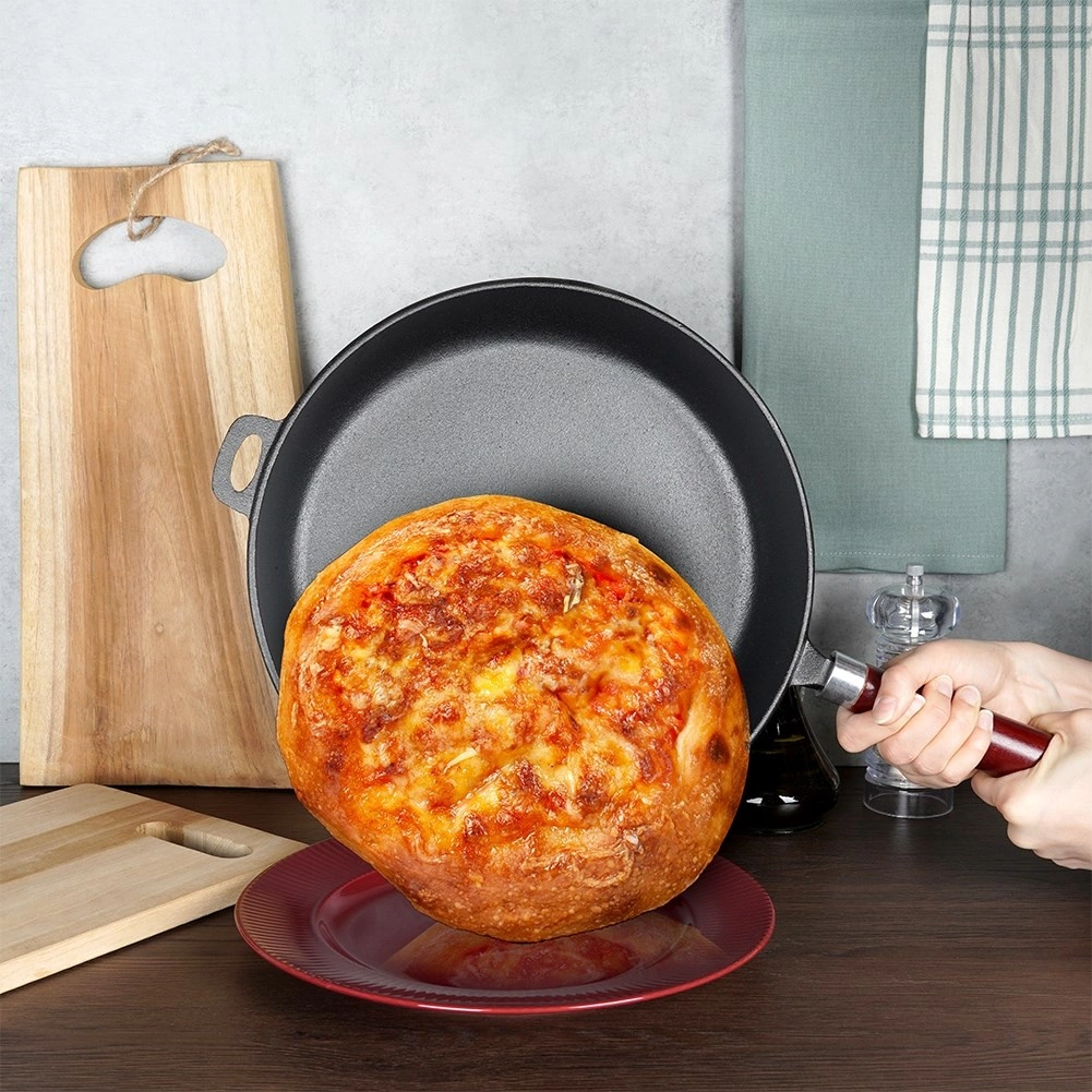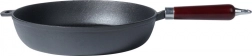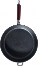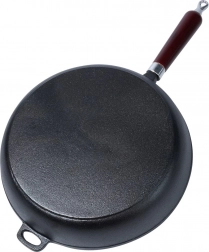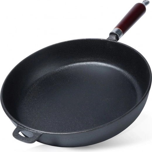 Praktická drevená rukoväť poskytuje istý úchop, pomocné uško uľahčuje manipuláciu a zavesenie. Panvicu možno používať na všetkých typoch sporákov vrátane indukcie a tiež na grile či otvorenom ohni. Po odskrutkovaní rukoväte je vhodná aj do rúry. Bez nepriľnavých povlakov – čisté liatinové riady pre prirodzené výsledky varenia.