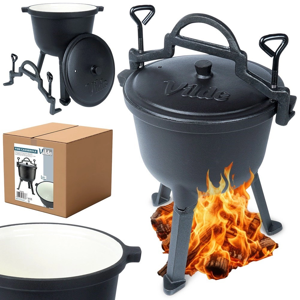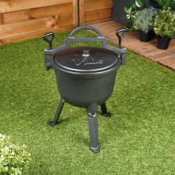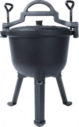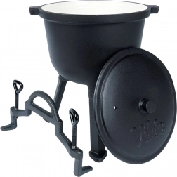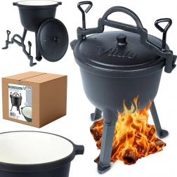 Tento odolný kotlík z čiernej liatiny s béžovým smaltovaným vnútrom výborne drží a rovnomerne odovzdáva teplo, takže pokrmy sú hotové rýchlejšie a zostanú šťavnaté a aromatické. Vďaka trojm stabilným nožičkám je bezpečný na použitie nad ohniskom či žeravými uhlíkmi. Vhodný na varenie, pečenie, dusenie aj vyprážanie v prírode.
