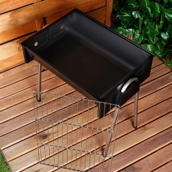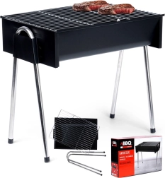 Užite si grilovanie kdekoľvek s týmto kompaktným prenosným grilom na uhlie. Ponúka stabilnú konštrukciu na štyroch nohách, chrómovaný vyberateľný rošt pre ľahké čistenie a odolné oceľové telo s práškovou povrchovou úpravou. Ideálne na kempovanie, pikniky aj záhradu.