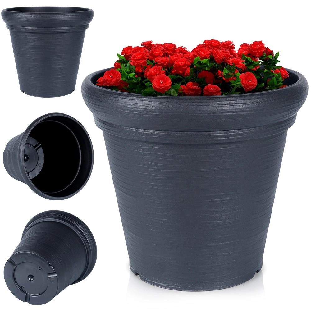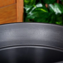 Univerzálny okrúhly kvetináč s horným priemerom 38 cm a výškou 34 cm je ideálny na terasu, balkón aj k vchodovým dverám. Vzhľad kameňa v modernej čiernej farbe dodá rastlinám reprezentatívny rám a zároveň je nádoba ľahká a ľahko prenosná.