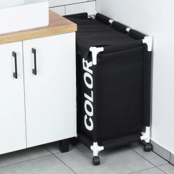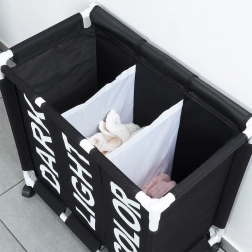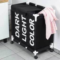 Udržte domácnosť organizovanú vďaka premyslenému košu na bielizeň s objemom 137 l a tromi oddelenými komorami. Viditeľné nápisy DARK, LIGHT a COLOR zrýchlia každodenné triedenie, zatiaľ čo pevná textília drží tvar aj pri plnom naplnení. Mobilná konštrukcia na kolieskach šetrí čas aj chrbát – bielizeň ľahko preveziete priamo k práčke.